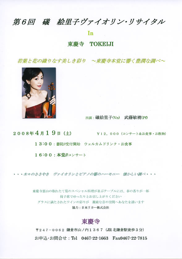 礒 絵里子 ヴァイオリン・リサイタルin東慶寺Vol.6