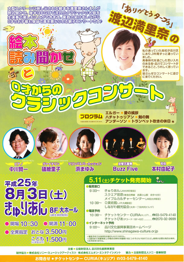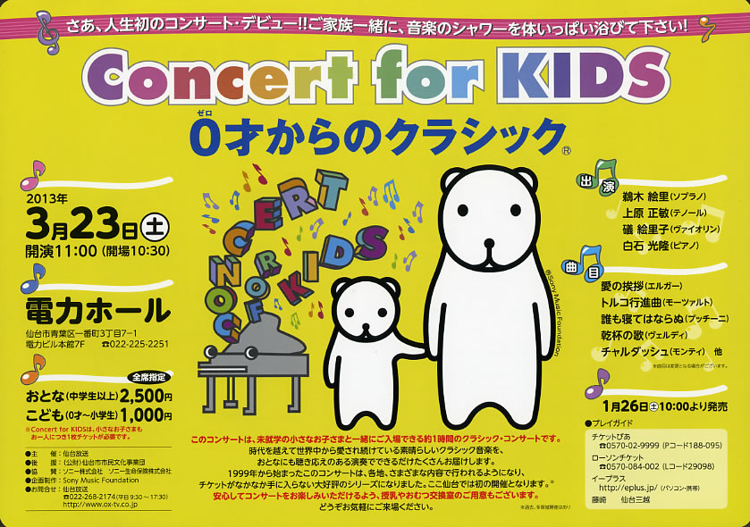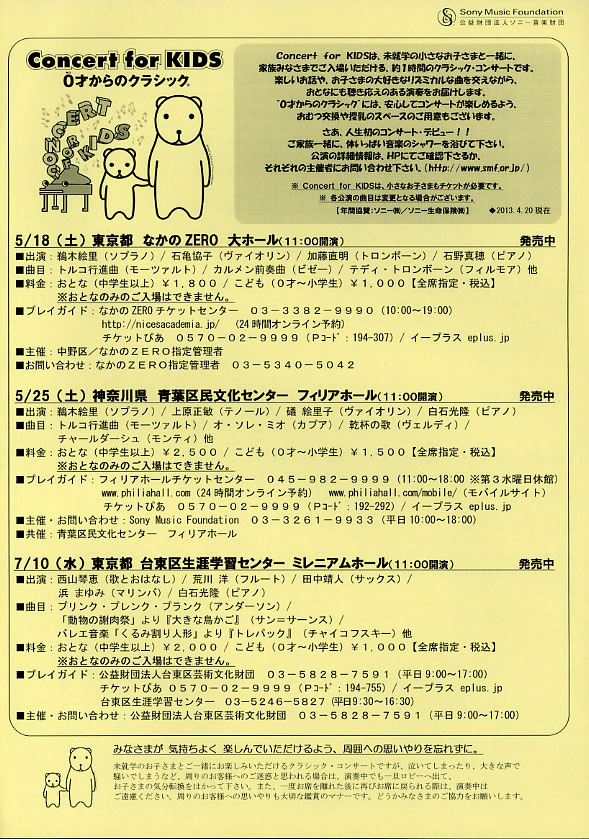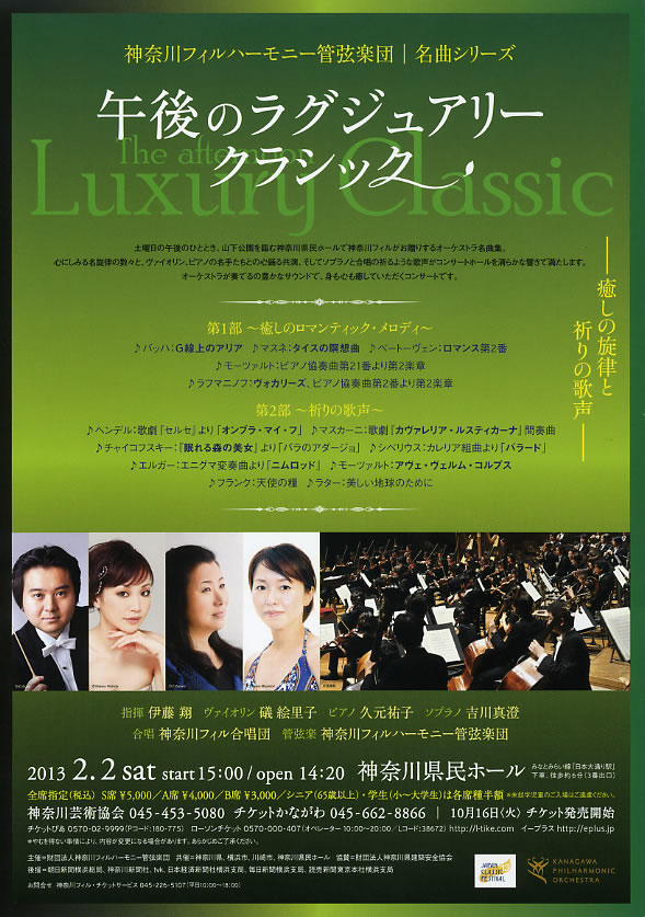 神奈川フィルチケットサービス045‐226‐5107(平日10:00〜18:00) |