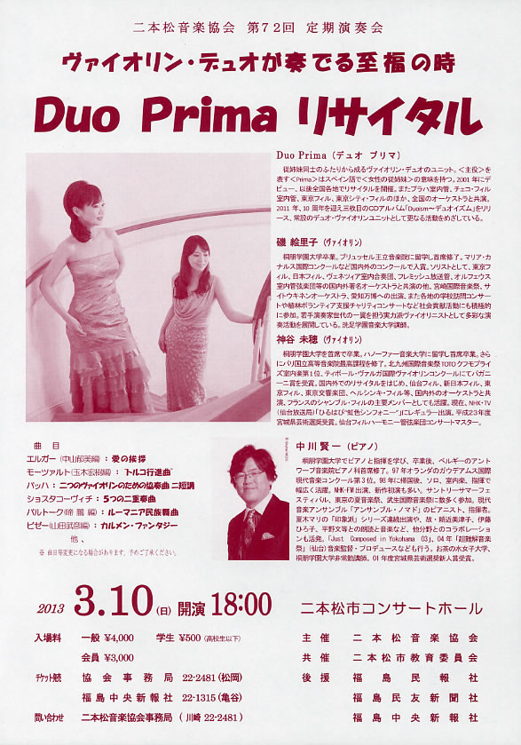 デュオ・プリマ(礒絵里子&神谷未穂)Vn. 中川賢一Pf. |