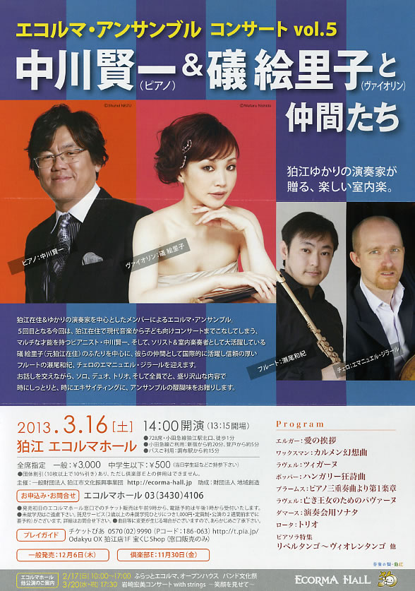 中川賢一Pf. 瀬尾和紀Fl. エマニュエル・ジラールVc. |