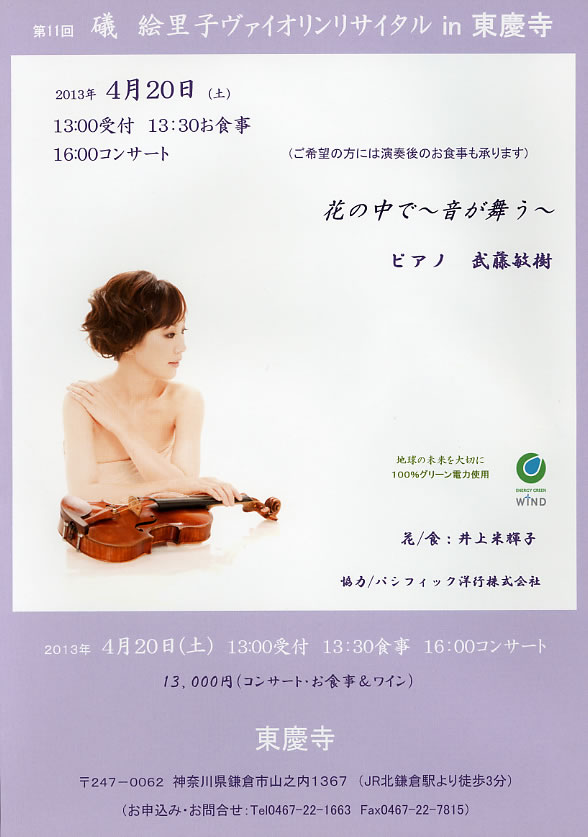 第11回礒絵里子ヴァイオリンリサイタル in 東慶寺 |