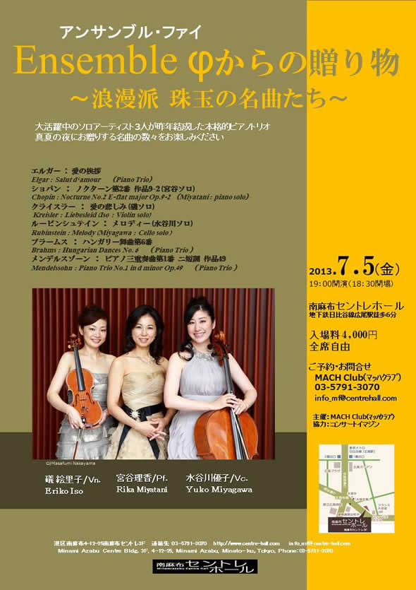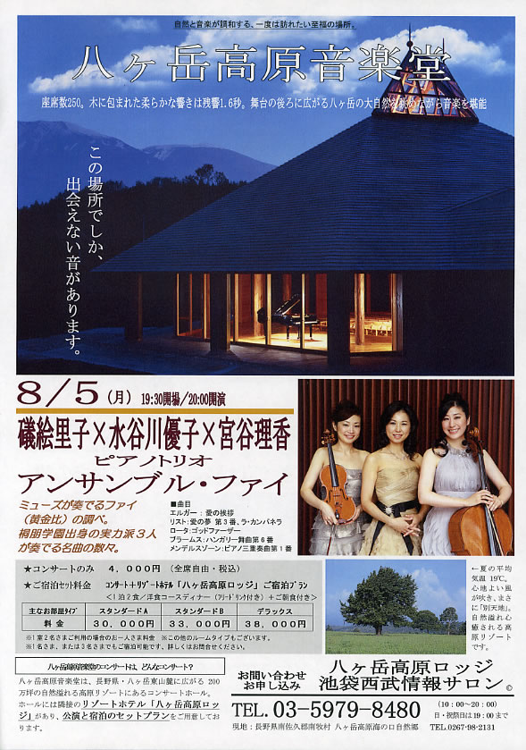 三枝成彰、礒絵里子Vl. 水谷川優子Vc. 小柳美奈子Pf. |