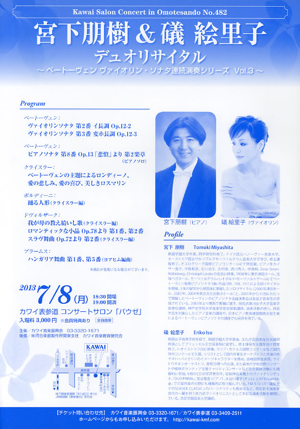 鵜木絵里Sop. 吉川健一Bar. 礒 絵里子Vl. 中川賢一Pf. |