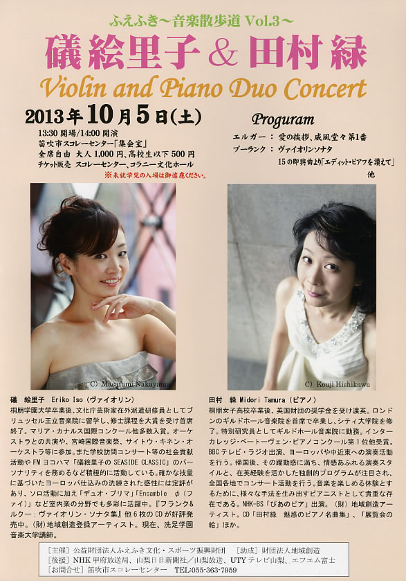 礒 絵里子/神谷未穂(ヴァイオリン) エマニュエル・ジラール(チェロ) |