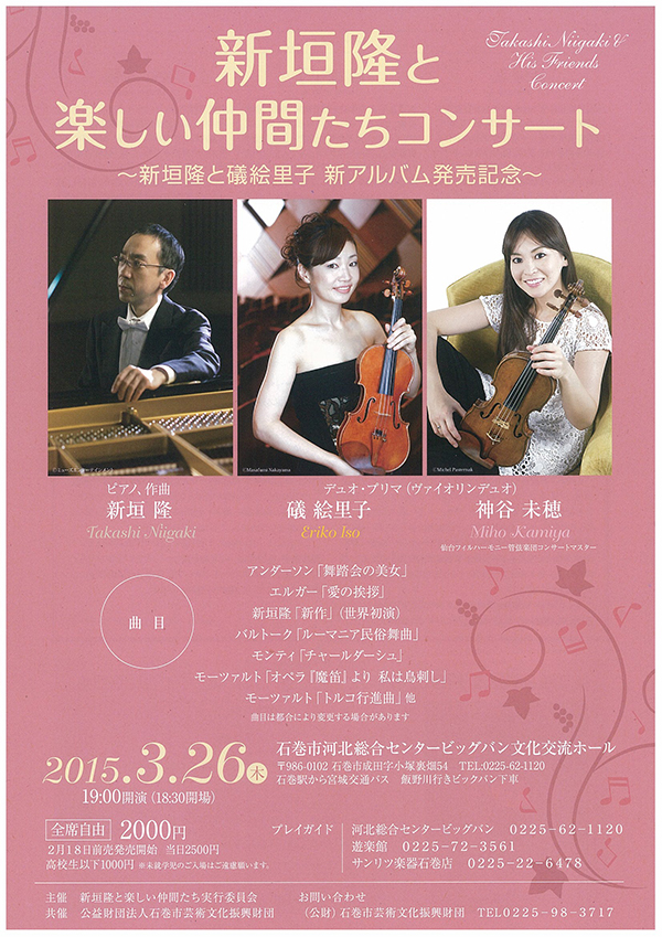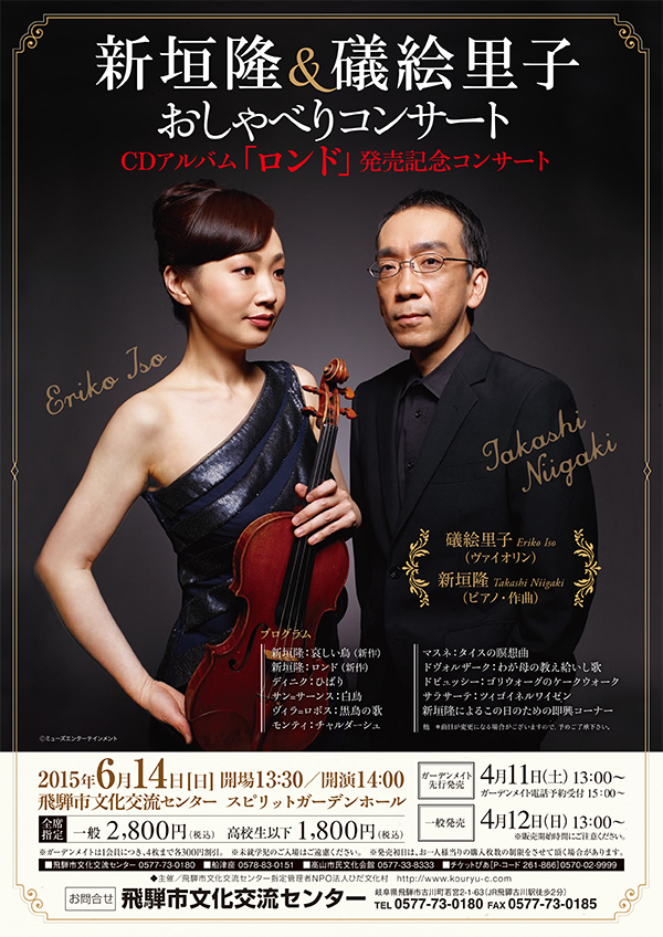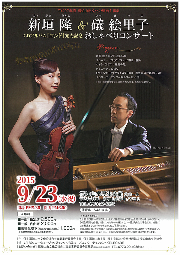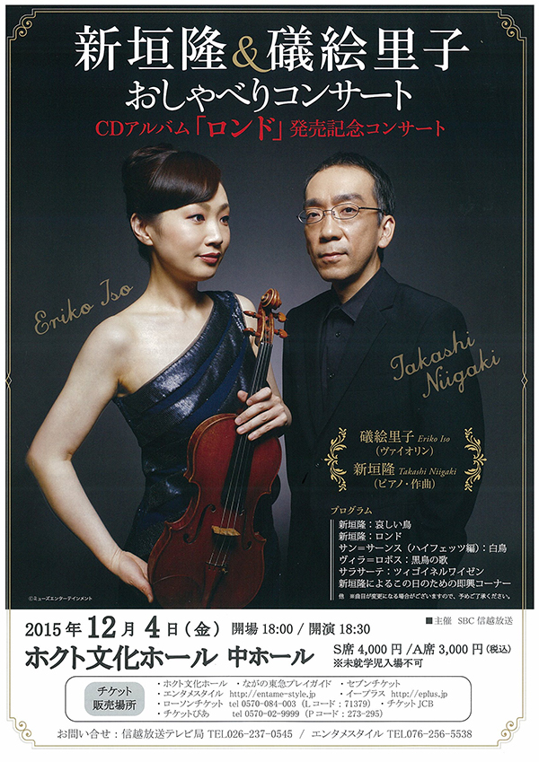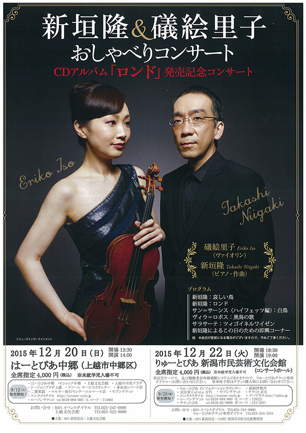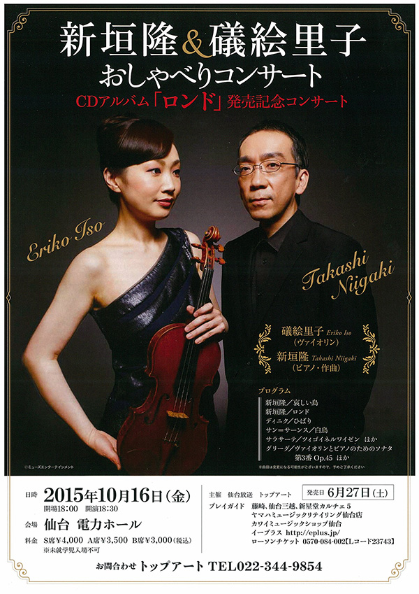 ヴァイオリン:礒絵里子、Pf:新垣隆 |
