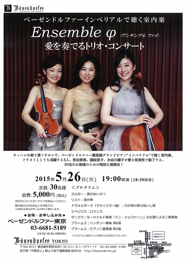 三枝成彰、礒 絵里子Vl. 水谷川優子Vc. 小柳美奈子Pf. |