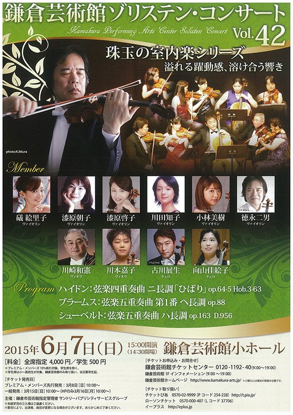 ヴァイオリン:礒絵里子、漆原朝子、漆原啓子、川田知子、小林美樹、