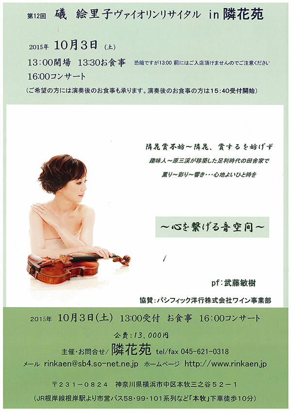 第12回礒 絵里子ヴァイオリンリサイタルin隣花苑 |