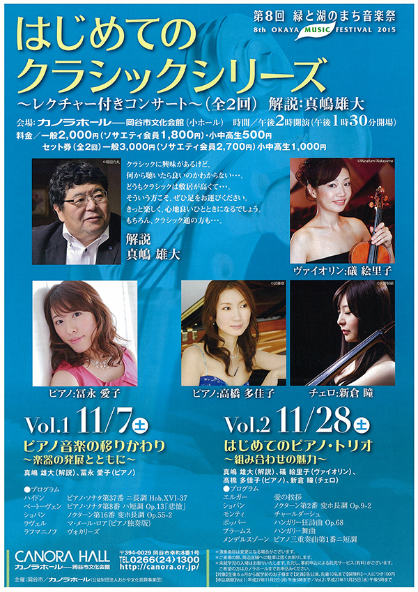 解説/真嶋雄大 礒 絵里子Vl. 、新倉瞳Vc. 、高橋多佳子Pf. |