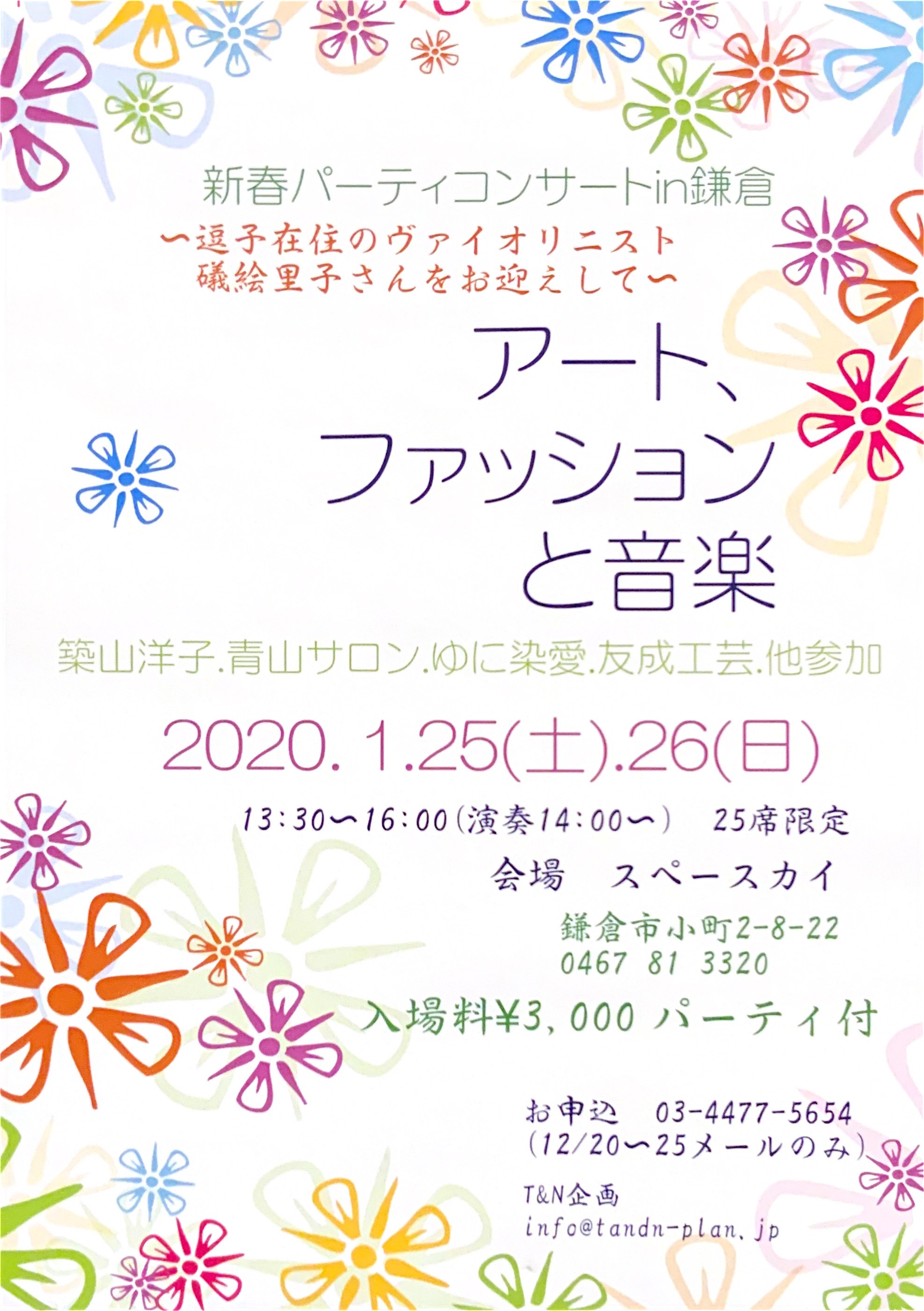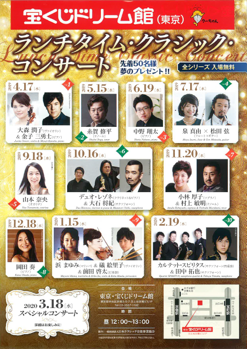 | 日時 | 2020年1月15日(水)12時〜13時(1時間のコンサートです) |