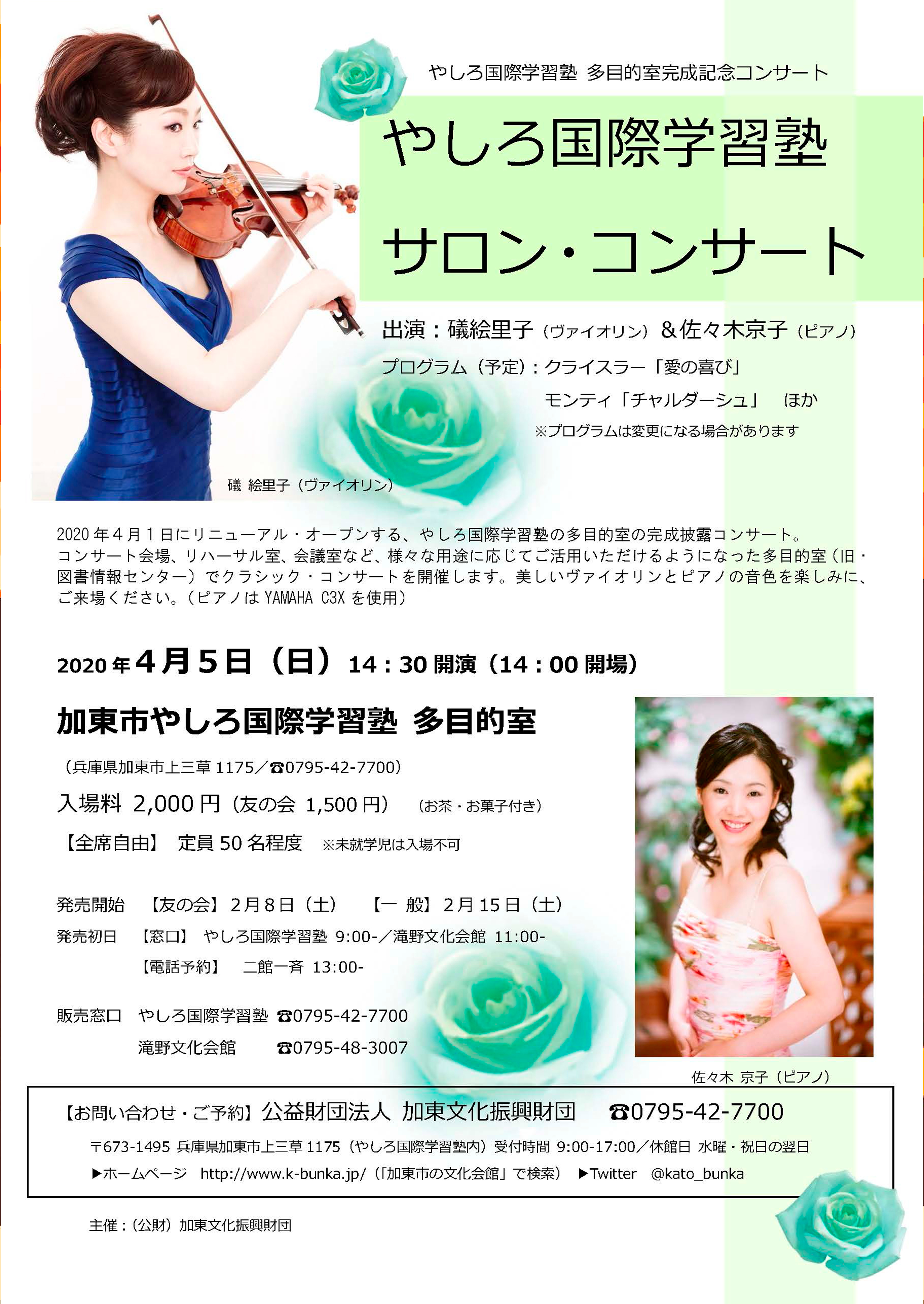| 共演 | 高橋多佳子(Pf) 堀沙也香(Vc) |