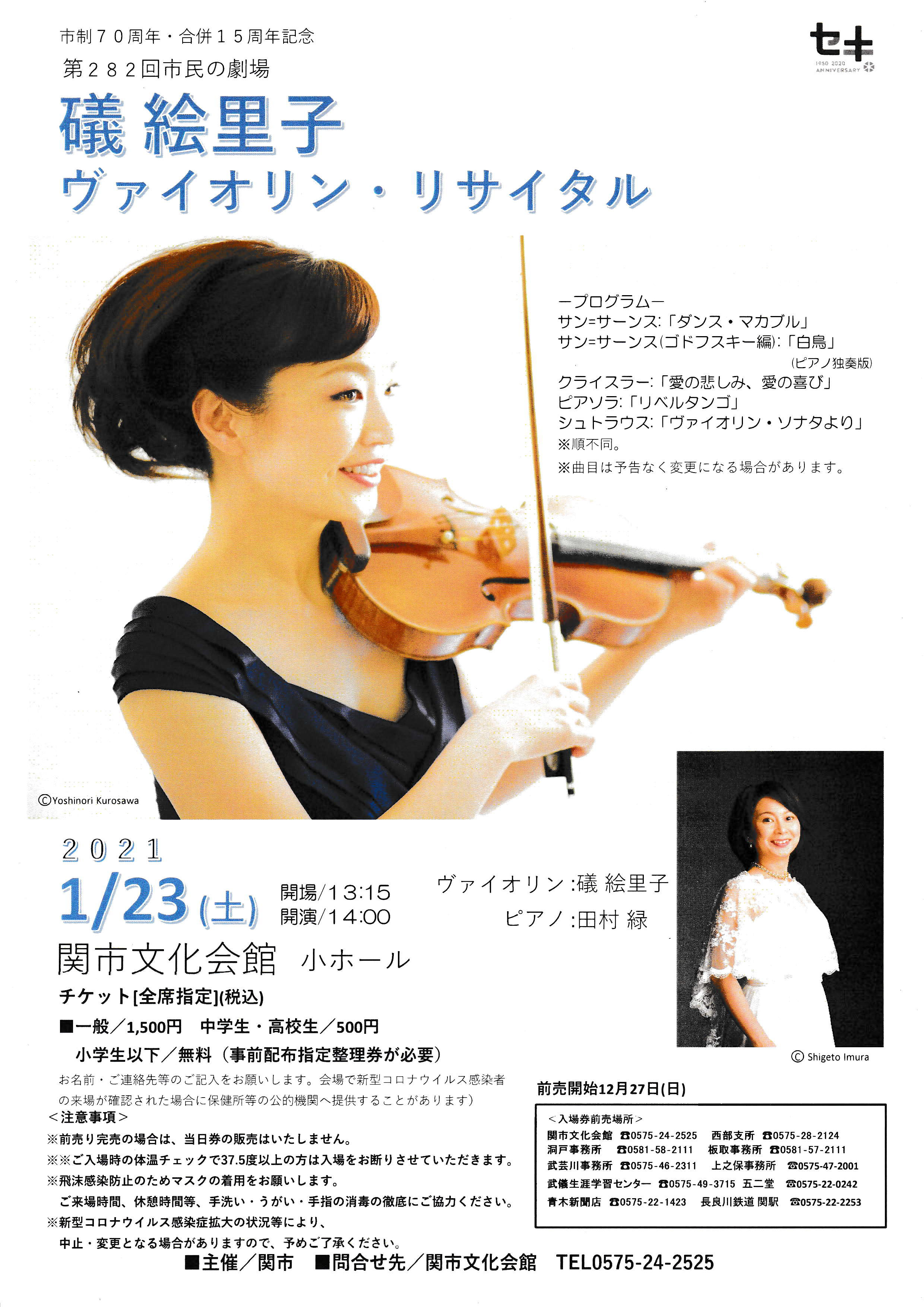 第282回市民の劇場 礒絵里子ヴァイオリンリサイタル