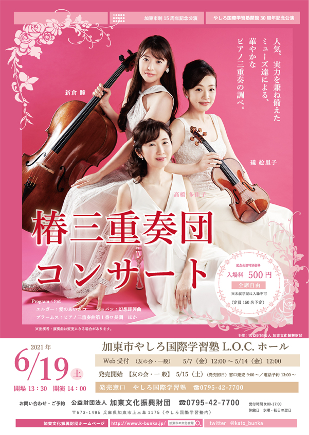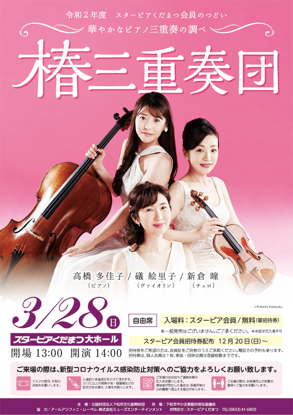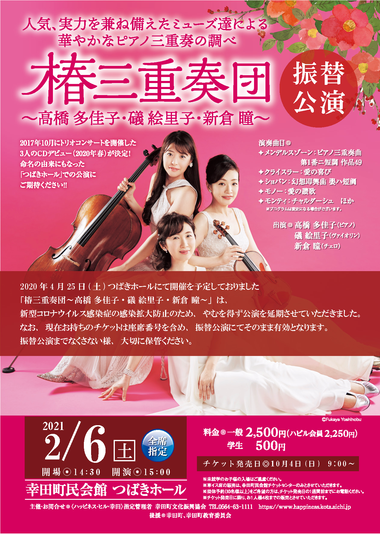 《振替公演》 人気、実力を兼ね備えたミューズたちによる華やかなピアノ三重奏の調べ 椿三重奏団
