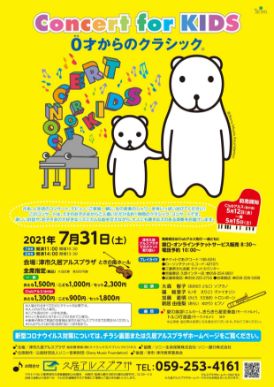 | 日時 | 2021年7月31日(土)11時開演&14時開演 (休憩無し1時間のコンサートです。2回公演) |