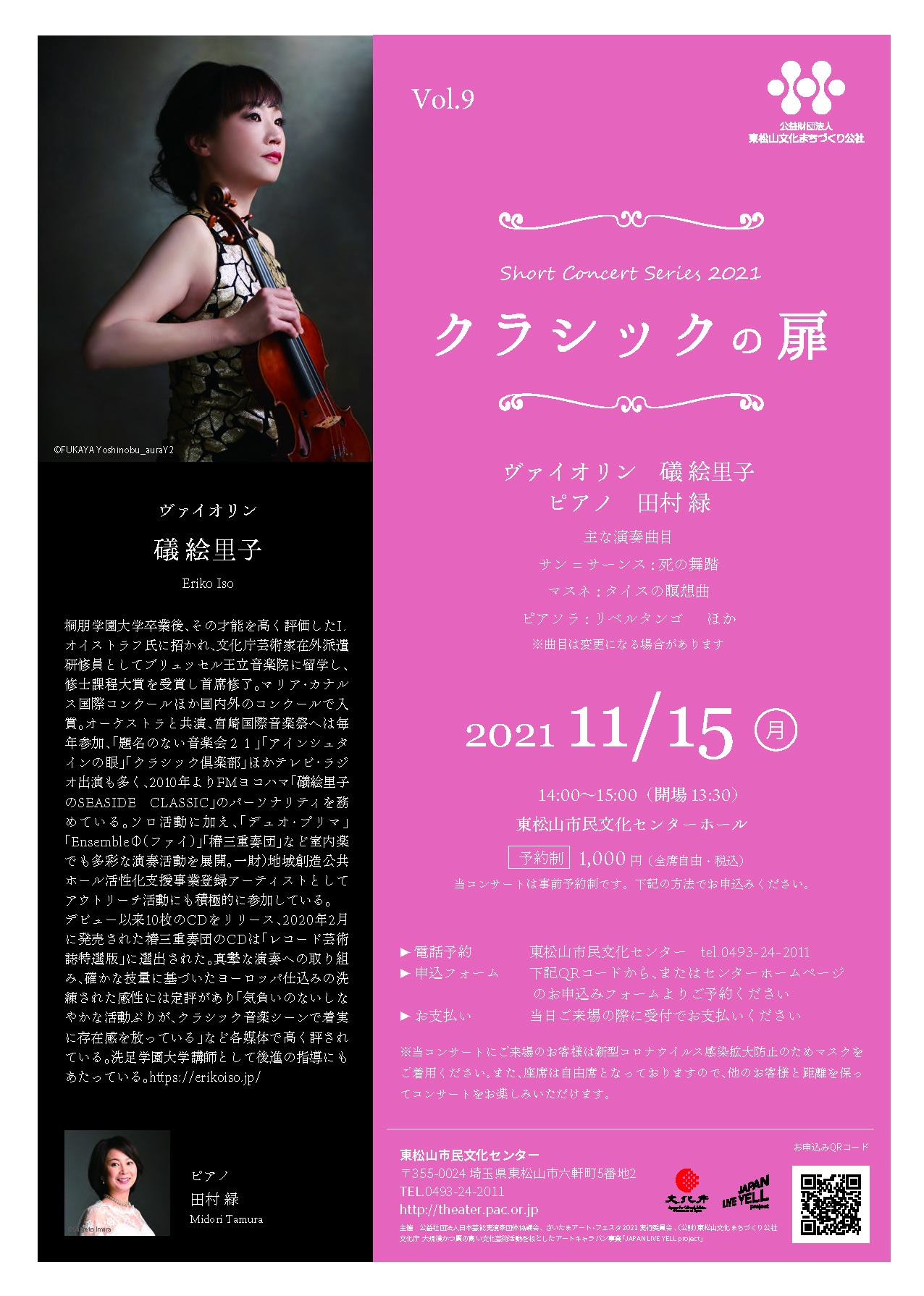 | 問合 | 東松山市民文化センター 0493-24-2011 |